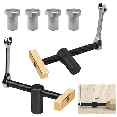 Choonjin 2 stycken arbetsbänksskruvstäds-tillbehörsklämma, 4 stycken positioneringsspänningselement, skruvstäd, hyvelbänk, 20 mm hål för träarbete, skrivbordsklämma, snabbfixerad klämma (svart)