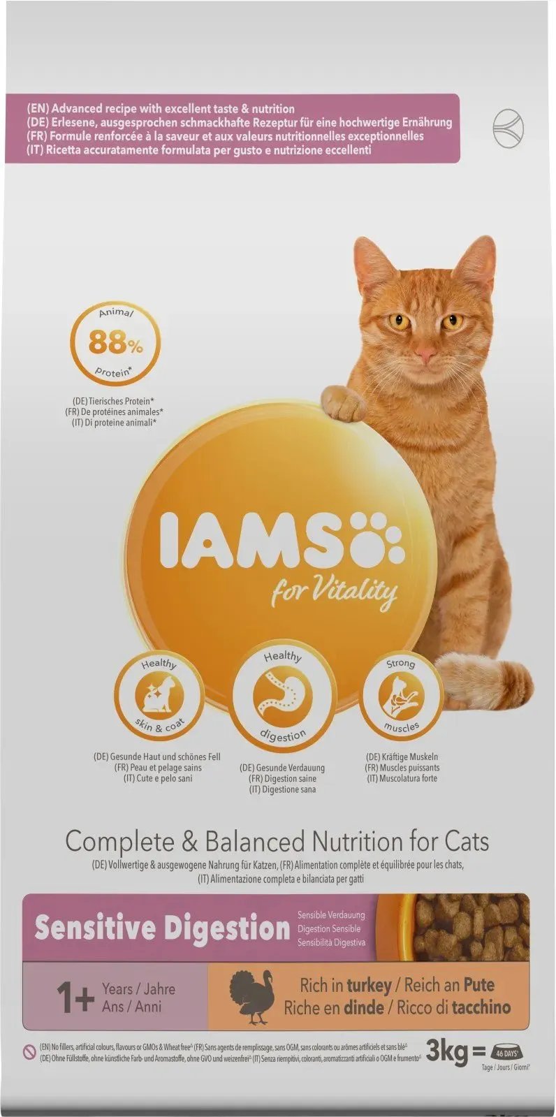 Iams Cat Vitality Adult/Senior Sens Digestion Turkey 3 Kg