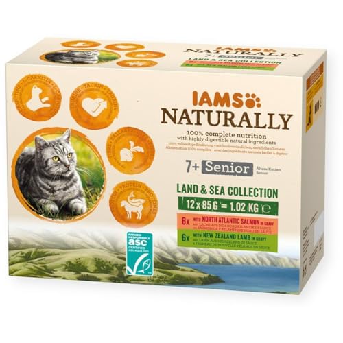 IAMS Naturally Land & Sea Collection Senior Kattmat i sås - högkvalitativt våtfoder med kött och fisk för äldre katter, 12 x 85 g