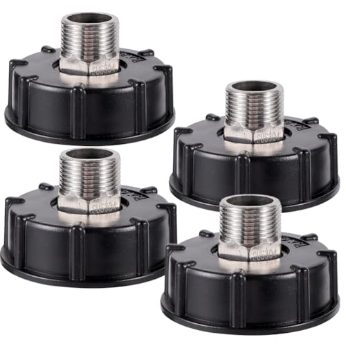 FOGWOWO IBC-adapter S60X6 IBC tank tillbehör 3/4 tum grov gänga med 3/4 tum yttre gänga slanganslutning rostfritt stål ventilutlopp beslag, 4 stycken