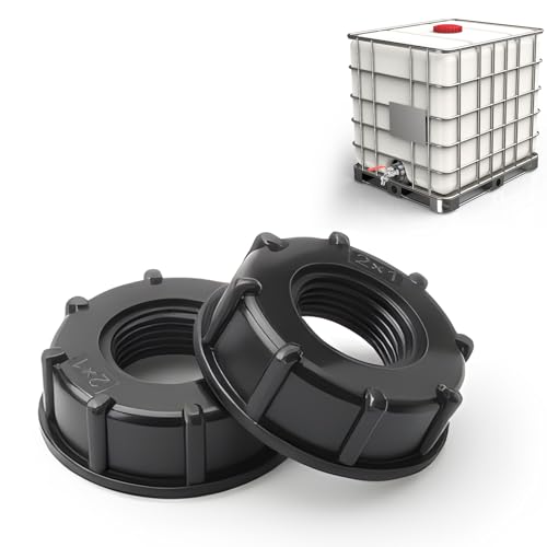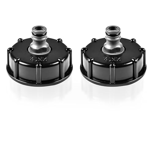 2 stycken IBC-adapter, 1 tum, invändig gänga, adapter, lock, utloppskran IBC-tanklockadapter, IBC-behållare S60 x 6, tillbehör, adapter, lock för 1000 l vattentank 1 tum (svart)