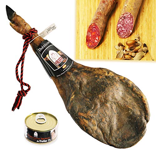 EL ARCON | Paleta de Cebo Pata Negra 4-4,5Kg | Ibérico Precinto Blanco | Halva rundan med 450g Chorizo och 450g Salchichón extra Ibérico de bellota | Jabugo-området Huelva