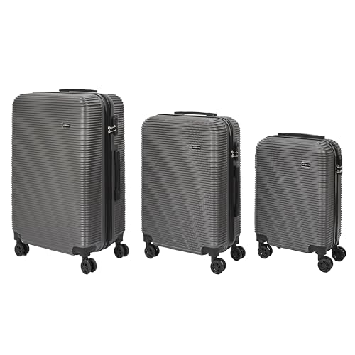 JET LAG, VO0039, Set med 3 Ibiza Grå resväskor 43L 68L 95L, Optimal lagringskapacitet, elegant och modern design, Robusthet och hållbarhet, Enkel transport, Förstärkt säkerhet