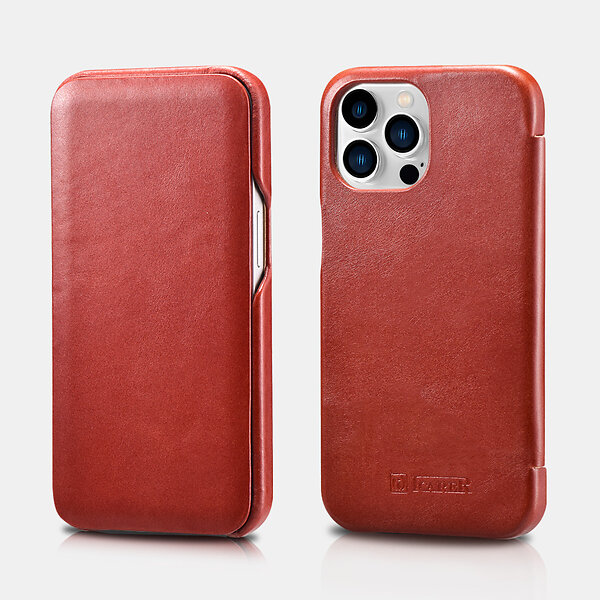 iCarer iCarer Metal Clip Vintage Folio Bookcase i äkta läder fodral för iPhone 13 Pro Max - Brun (RIX1308-BN)
