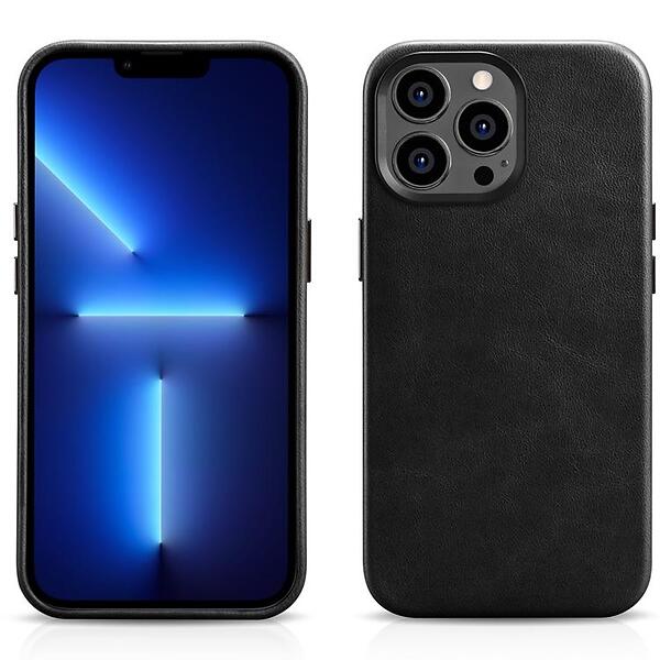 iCarer iPhone 13 Vintage Pro äkta Läder Max Svart
