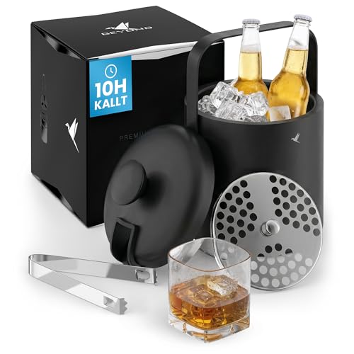 Beyond Ishållare med Lock & Tång i Rostfritt Stål BPA-fri - Dubbelväggig Iskylare 1,3 Liter Isbitar, Ishink, Iskylare, Isbitsbehållare, Ice Cube Bucket Kylare - Svart