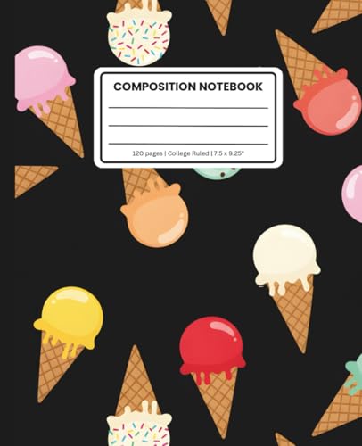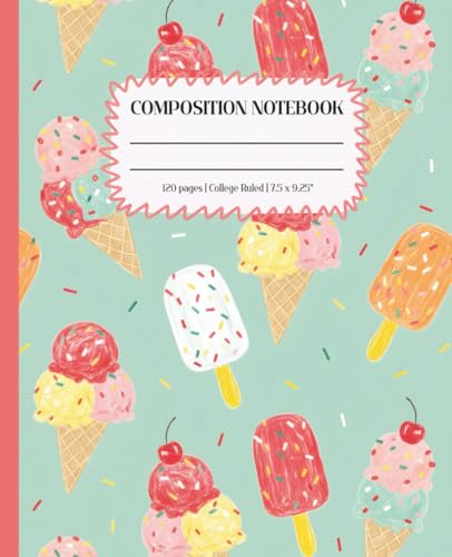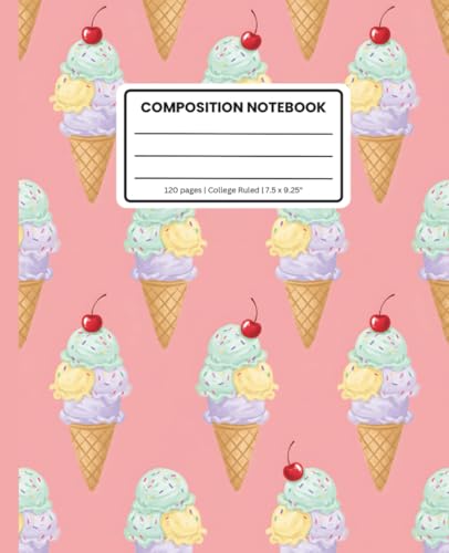 Cute Ice Cream Cone Composition Notebook: Ice Cream Cone Notebook for Kids | Wide Ruled, 100 Pages, 7.5 x 9.25" | Fun and Notebook for Journaling, School and Sweet Ideas