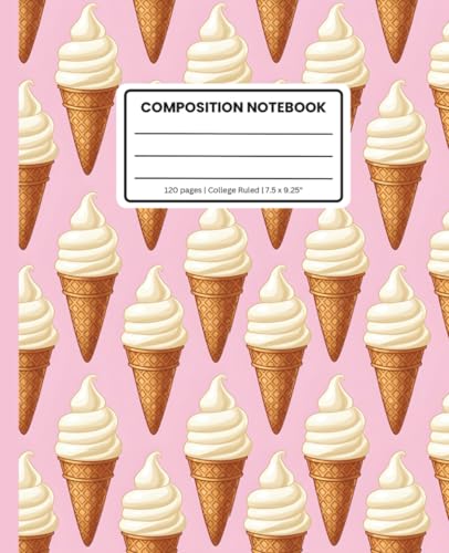Composition Notebook College Ruled: The Sweet Classic: Cute Vanilla Ice Cream Cone Pattern: Aesthetic Soft Matte Cover for School, Work, or Journaling