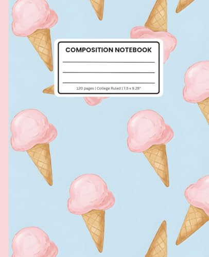 Pink Scoops of Inspiration: College-Ruled Composition Book – 110 Pages – Fun Ice Cream Cone Design – Perfect for School, Work, or Journaling – 7.5 x 9.25 in