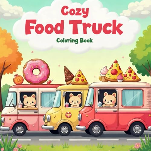 Cozy Food Truck Coloring Book: Adorable Kawaii Food Trucks with Donuts, Pizza, Ice Cream & Cute Animals — Fun Coloring Pages for Kids, Teens, and Food Lovers
