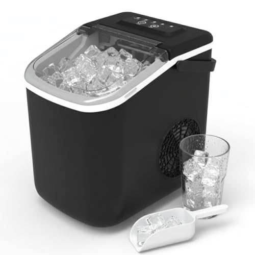 Vinato isbitsmaskin, isbitsmaskin liten, 9 isbitar på bara 6–8 minuter, bärbar Ice Cube Maker 12 kg/24 h, tyst drift, med isskopa och korg för kök, kontor, bar och fest