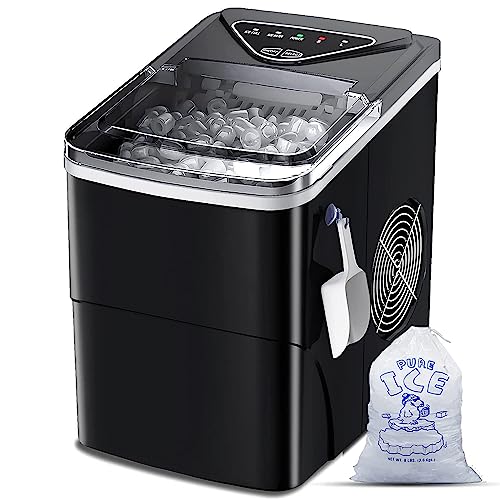 Ice Cube Maker Klara isbitar, självrengörande ismaskin, 9 kuber klara på 6 minuter, 15 kg på 24 timmar, bärbar ismaskin för hem/kök/kontor/bar