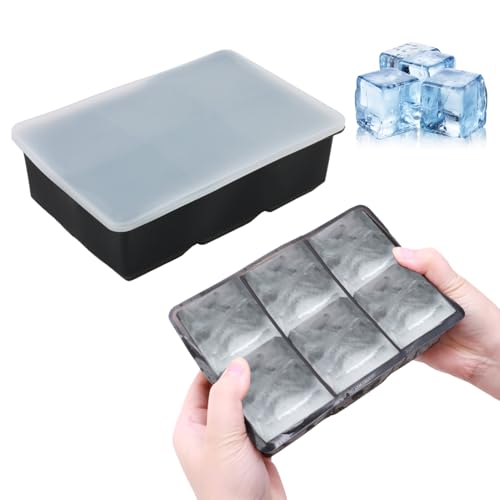 NeutypeChic Iskubsform, 1 st 6 fack silikon isbitsskål med lock, stor fyrkantig isbitar 4,8 cm för cocktails whisky vin frukt fruktmos glass