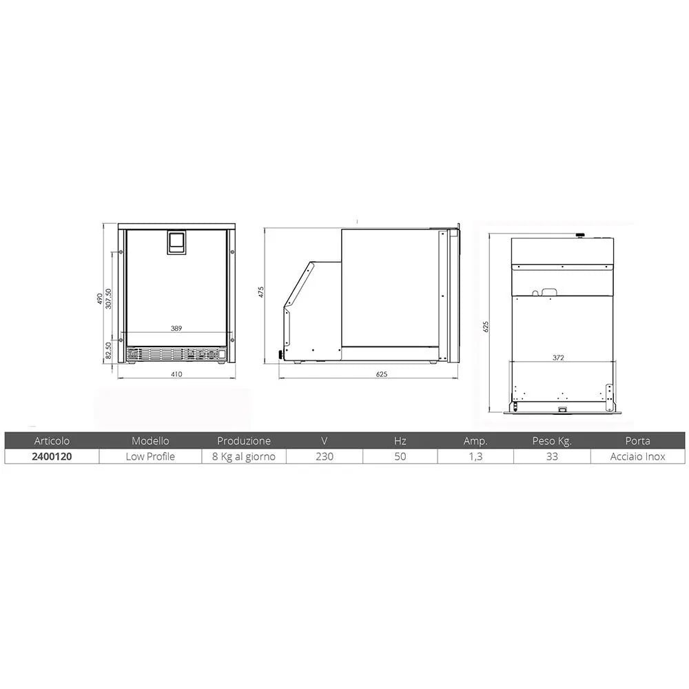 Indel Marine Low Profile Ice Maker 230v 50hz Silver 41 x 49 x 62.5 cm