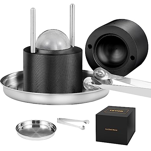 VEVOR Ice Ball Maker isbollspress set 60 mm, isbitsform isbollsform med istång och droppskål, aluminium svarta hållbara isbitsformar isbitsbehållare whisky Americano, juice