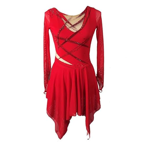 Konståkningsklänningar för professionella tjejer röd Ice Roller sportdansdräkt Rytmisk Gymnastik Leotards Skridskokläder med Rhinestone,Red,XL