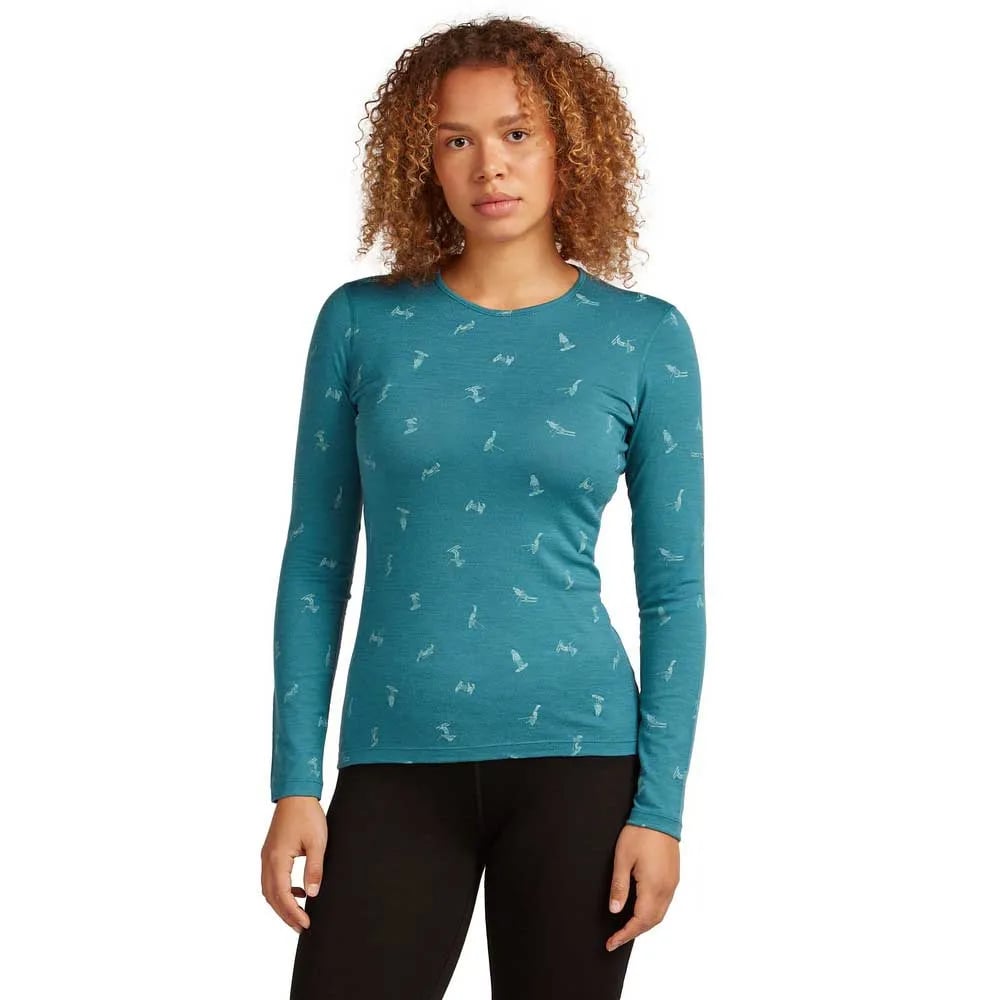 Icebreaker Merino 200 Oasis Crewe Snow Day Long Sleeve Base Layer Blå L Kvinna