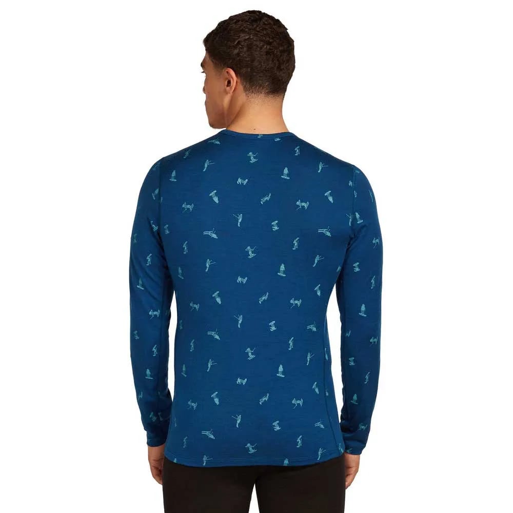 Icebreaker Merino 200 Oasis Crewe Snow Day Aop Long Sleeve Base Layer Blå L Man