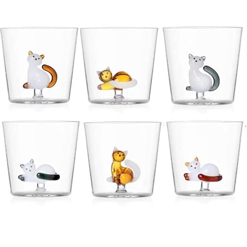 Ichendorf Set med 6 vattenglas djur djur gård tabby katt dekorerade glas