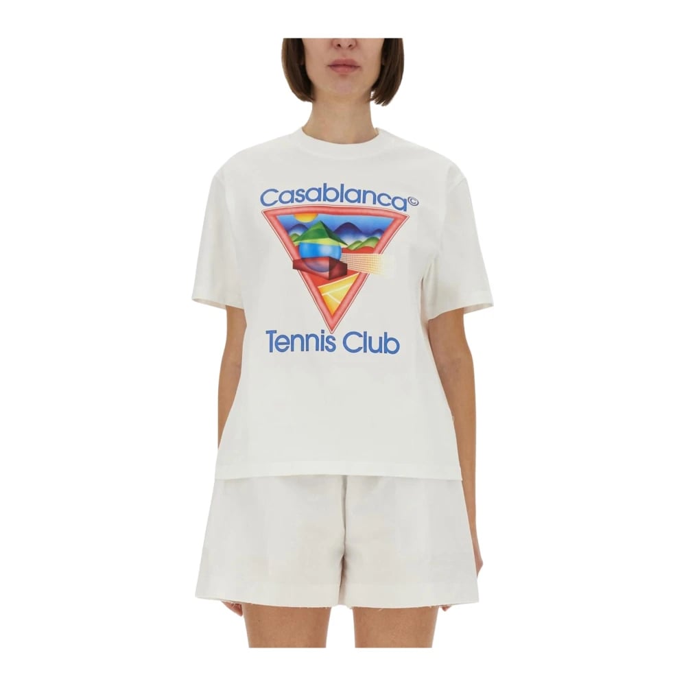Casablanca, Toppar , Herr, XL, Bomull, Tennis Club Icon Vit T-shirt