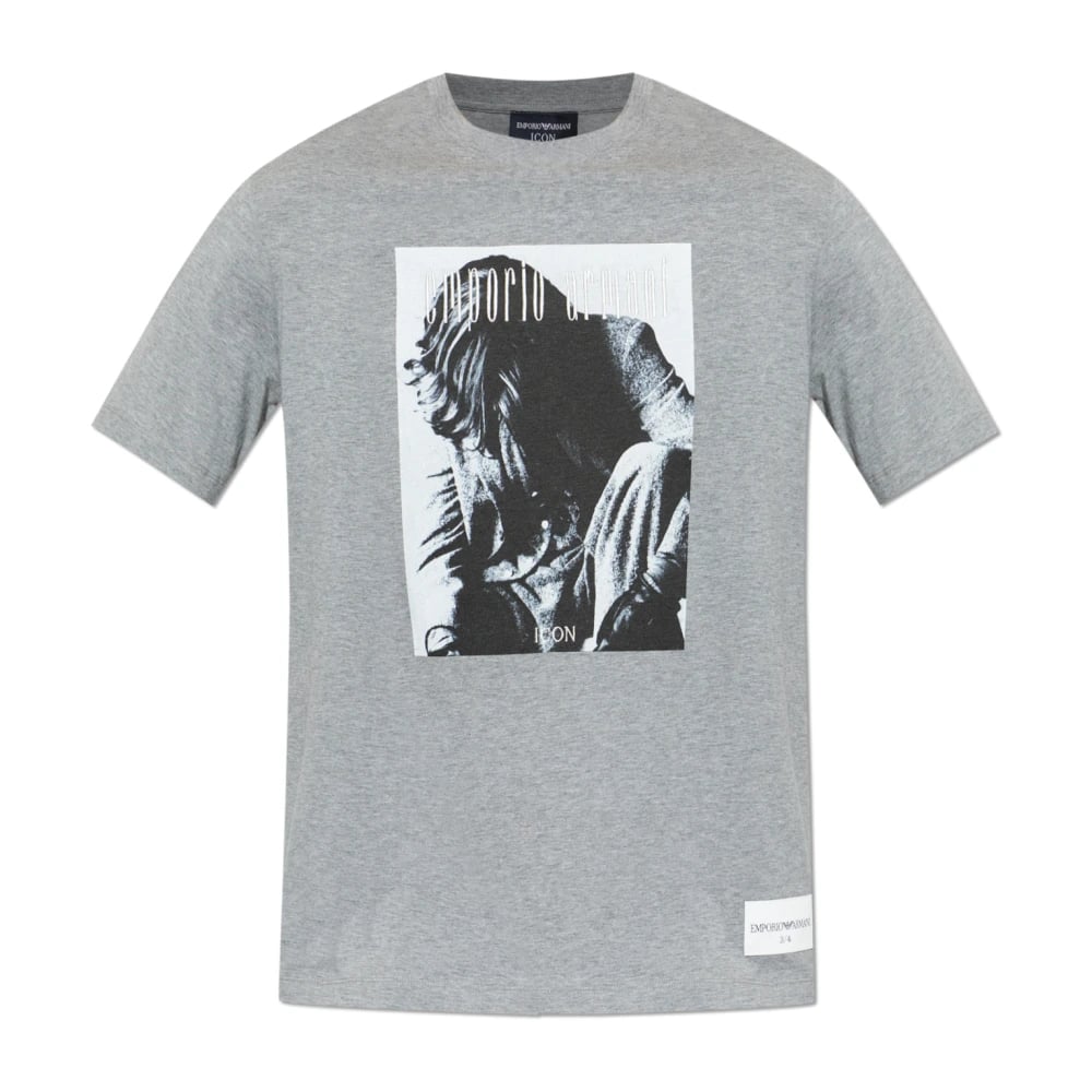 Emporio Armani, Toppar , Herr, S, Bomull, Icon Jersey T-shirt med fotografiskt tryck och broderi