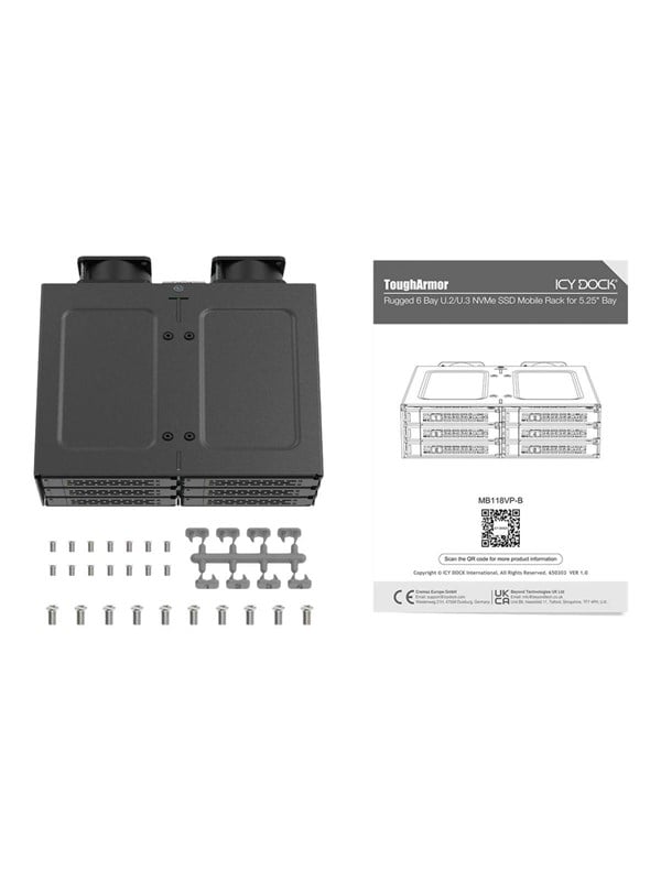 Icy Dock Tougharmor Mb118vp-B - Förvaringslåda - 6 X U.2/U.3 Nvme Ssd, Mobile Rack For 5.25"? Bay, With Slimsas Sff-8654 8I - 2.5" - Pcie 4.0 - Pcie 4.0 - Svart