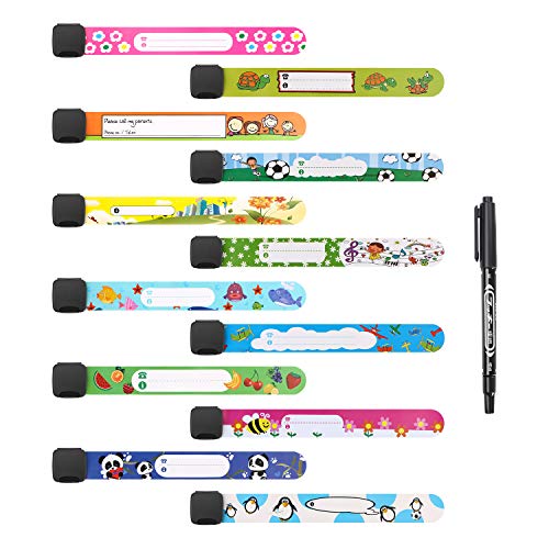 Vicloon 10 st Barnsäkerhet ID-armband, Anti-förlorat Barn ID-band Vattentäta återanvändbara för Barn Pojkar flickor Småbarn Baby