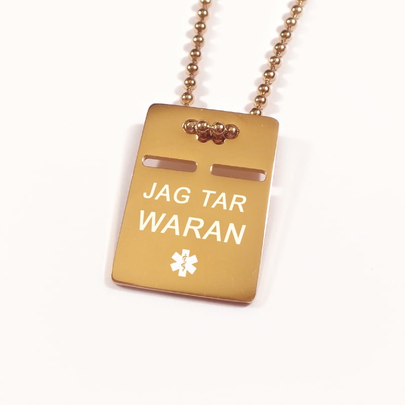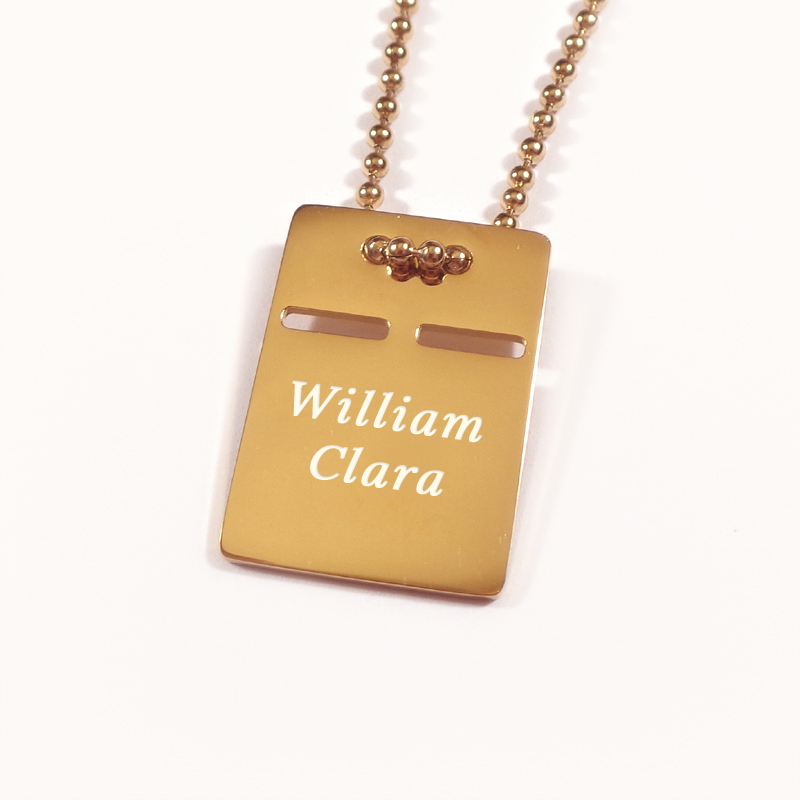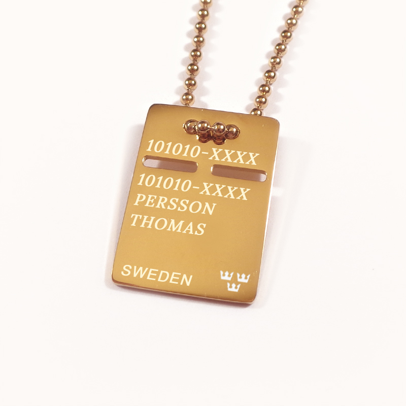Guld ID bricka, Halsband med gravyr - Rostfritt stål