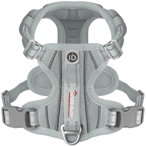 BARKBAY Inget drag hundsele framklämma kraftig reflekterande enkel kontrollhandtag för stor hund som går med ID-bricka ficka (grå, L)