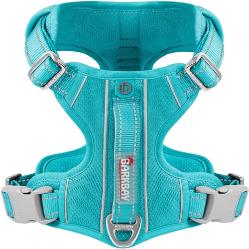 BARKBAY Inget drag hundsele framklämma kraftig reflekterande enkel kontrollhandtag för stor hund som går med ID-bricka ficka (blå, L)