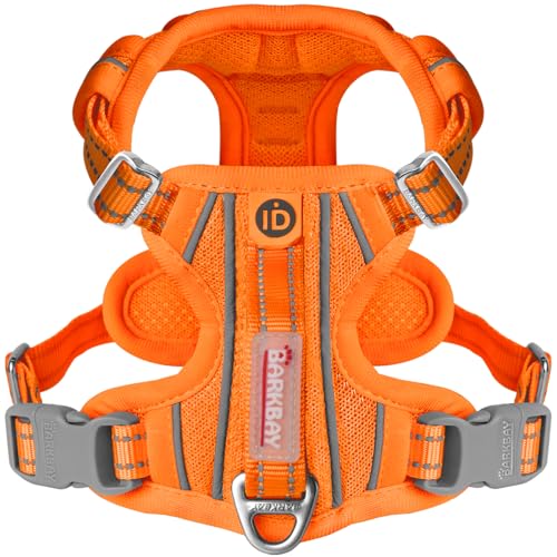 BARKBAY Inget drag hundsele framklämma kraftig reflekterande enkelt handtag för stor hund som går med ID-bricka ficka (orange, L)