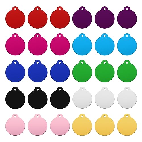 QUARKZMAN Rund laser gravyr råämnen etiketter stämplar tomma etiketter hund ID-bricka 10 färger pyssel metalletiketter för djur hängen dekoration hantverk etiketter förpackning med 30