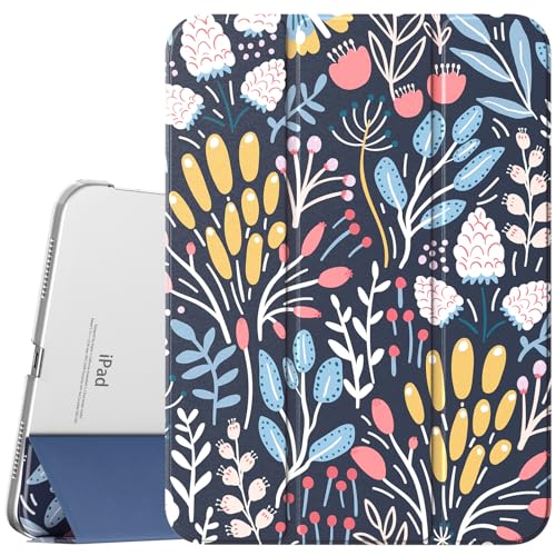 TiMOVO Case for iPad (A16) 11th Generation 11 Inch 2025/iPad 10th Generation 10.9 Inch 2022, Slim Stand Cover with Hard Translucent Back, Support Touch ID, Auto Wake/Sleep, Colorful Flower