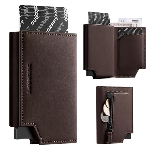 DUGRAFT Läderpopup-kortplånbok med RFID-skydd – sedelfack, myntficka, ID-kortsfönster och magnetisk stängning, Brun kaffe, 7.1 x 11.1 x 1.9 cm, Minimalistisk