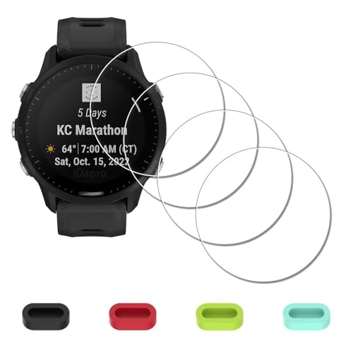 IDaPro Skärmskydd för Garmin Forerunner 255/255 Music 46 mm smartwatch + silikon dammpluggar [4-pack] härdat glas repfri bubbelfri