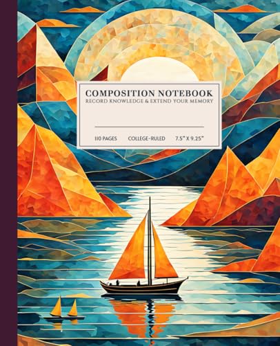 Geometric Serenity Composition Notebook | Stained Glass Sunset College-Ruled Notebook: Vibrant Sunset Seascape Design | 110 Pages | 7.5" x 9.25" | Ideal for Students, Artists, and Dreamers