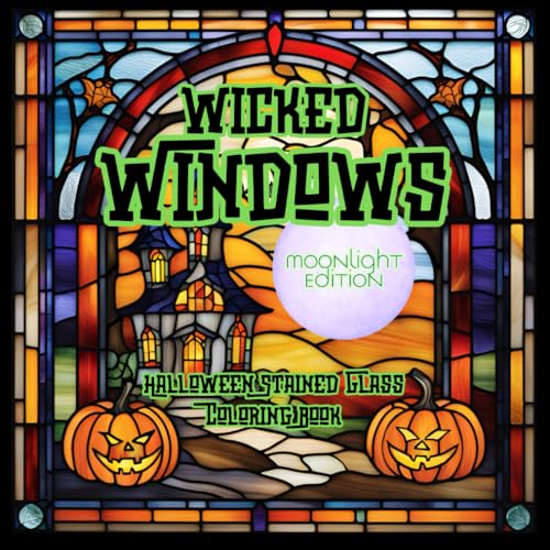 WICKED WINDOWS Moonlight Edition: Halloween Stained Glass Coloring Book for Adults and Teens. 20 Gothic Colored Illustrations with Black Protective ... Antistress and Creativity, Ideal for Markers.