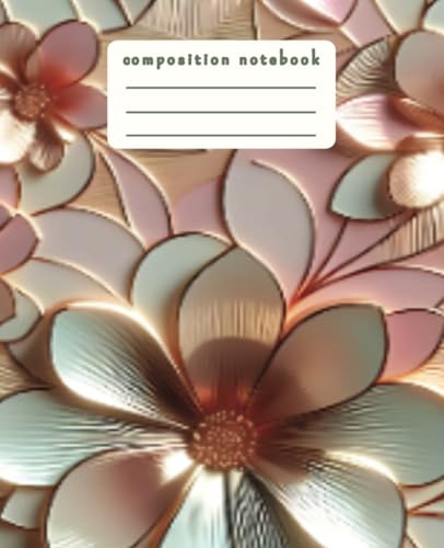Composition Notebook: College Ruled Pretty Pastel Pink Floral Journal Diary With Stained Glass 3D Effect for Women & Girls, 7.5 x 9.25, 120 Pages, Ideal for Kids, Teens, and Adults