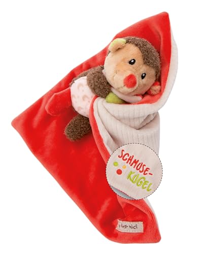 NICI Babyhandduk 22 x 22 cm med gosedjur igelkott – fluffig snuffelduk för flickor och pojkar, babygåva till födseln, med broderad bokstäver "gosig boll" – 49752