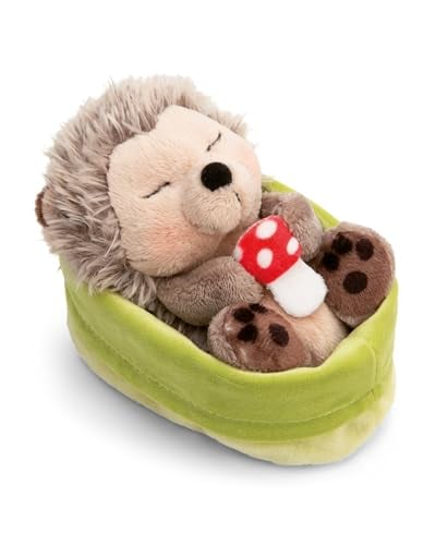 NICI gosedjur igelkott med padda som sover i korg - brun - Mjuk plysch, söt att gosa och leka med, för barn och vuxna, en fantastisk presentidé - 61583