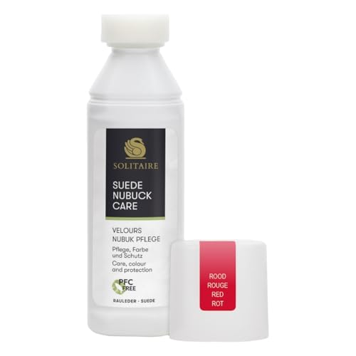 SOLITAIRE velour nubuckvård, 75 ml, färg röd, färguppdatering, lädervård och impregnering, färgaktivering av skor av mocka, råläder, mocka, nubuckläder och textilier