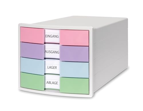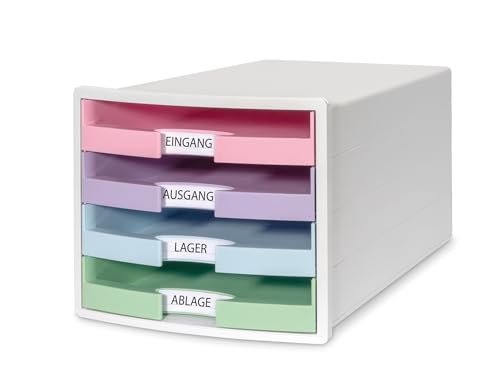 HAN Lådlåda IMPULS 2.0 med 4 öppna lådor för DIN A4/C4 inklusive etikettskyltar, utdragslås, möbelvänliga gummifötter, premiumkvalitet, 1013–129, vit/pastell