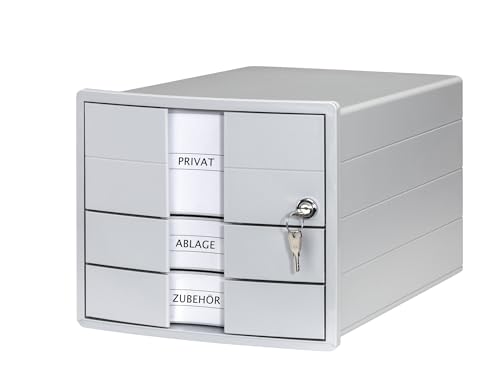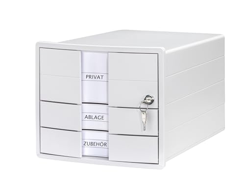 HAN Lådlåda IMPULS 2.0 låsbar med 3 slutna lådor för DIN A4/C4 inklusive etikettskyltar, underläggslåda, golv med utdragslås, möbelvänliga gummifötter, 1018-11, ljusgrå