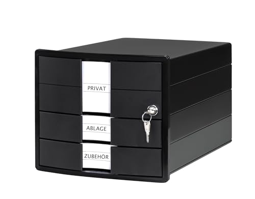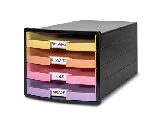 HAN Lådlåda IMPULS 2.0 med 4 öppna lådor för DIN A4/C4 inklusive etikettskyltar, utdragslås, möbelvänliga gummifötter, premiumkvalitet, 1013–139, svart/pastell
