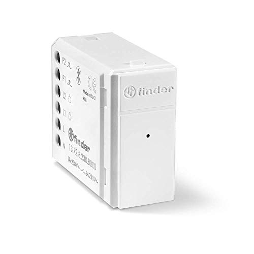 Finder 13728230B000 serie 13 elektronisk reläer med impuls och monostabilitet, 230 V, standard, 2 kontakter, 6 A, vit, relämultifunktion, Bluetooth BLE, AC, 50/60Hz