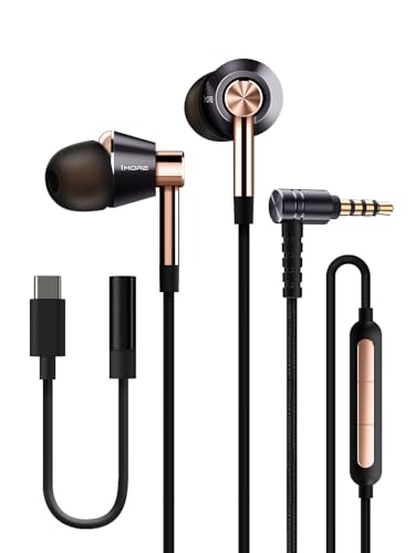 Holiper Dual Drivers Hörlurar med Sladd, in Ear Headphones Wired with Ultra Bass, Trådade Hörlurar with Microphone, Noise Isolating Wired Earbuds, 3.5mm Jack 1.2m Cord