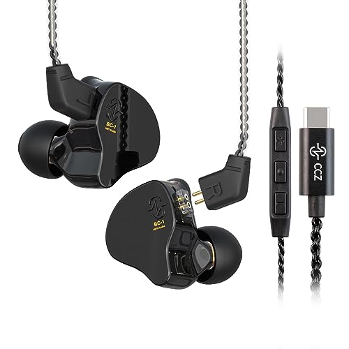 CCZ Melody In-Ear-Monitors Yinyoo Hybrid 1BA 1DD HiFi-hörlurar, Deep Bass Lättvikts In-Ear-hörlurar IEM med 4N OFC-kabel för musiker/trummis/bassist (svart, Mic TYPE-C)
