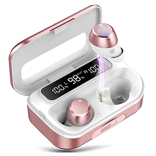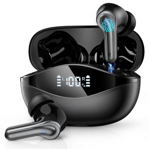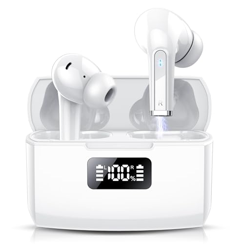 Bluetooth Headphones, Wireless Bluetooth 5.4 HiFi Stereo In Ear Headphones with 4 Mic, ENC Noise Reduction LED Screen IP7 Waterproof Headphones for Work and Study, 40 Hours Wireless Headphones