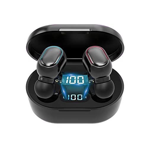 Bluetooth-hörlurar, trådlösa in-ear hörlurar Bluetooth med mic, 25 timmars speltid med LED-display, Hi-Fi-stereo, knappkontroll, för mobiltelefon, surfplatta, TV