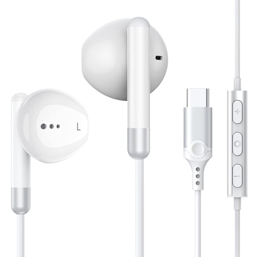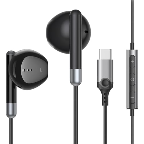 USB C hörlurar, Typ C hörlurar trådbundna hörlurar Stereo brus in-ear hörlurar reduktion, USB C hörlurar med mikrofon och volymkontroll kompatibel för Samsung Galaxy S23 Ultra S22 A54